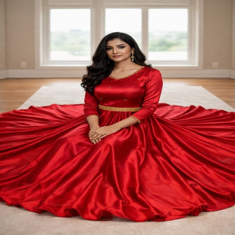 ✨ 360°+ ফ্লেয়ার হ্যান্ডক্রাফটেড সাটিন পাট্টি ড্রেস ✨